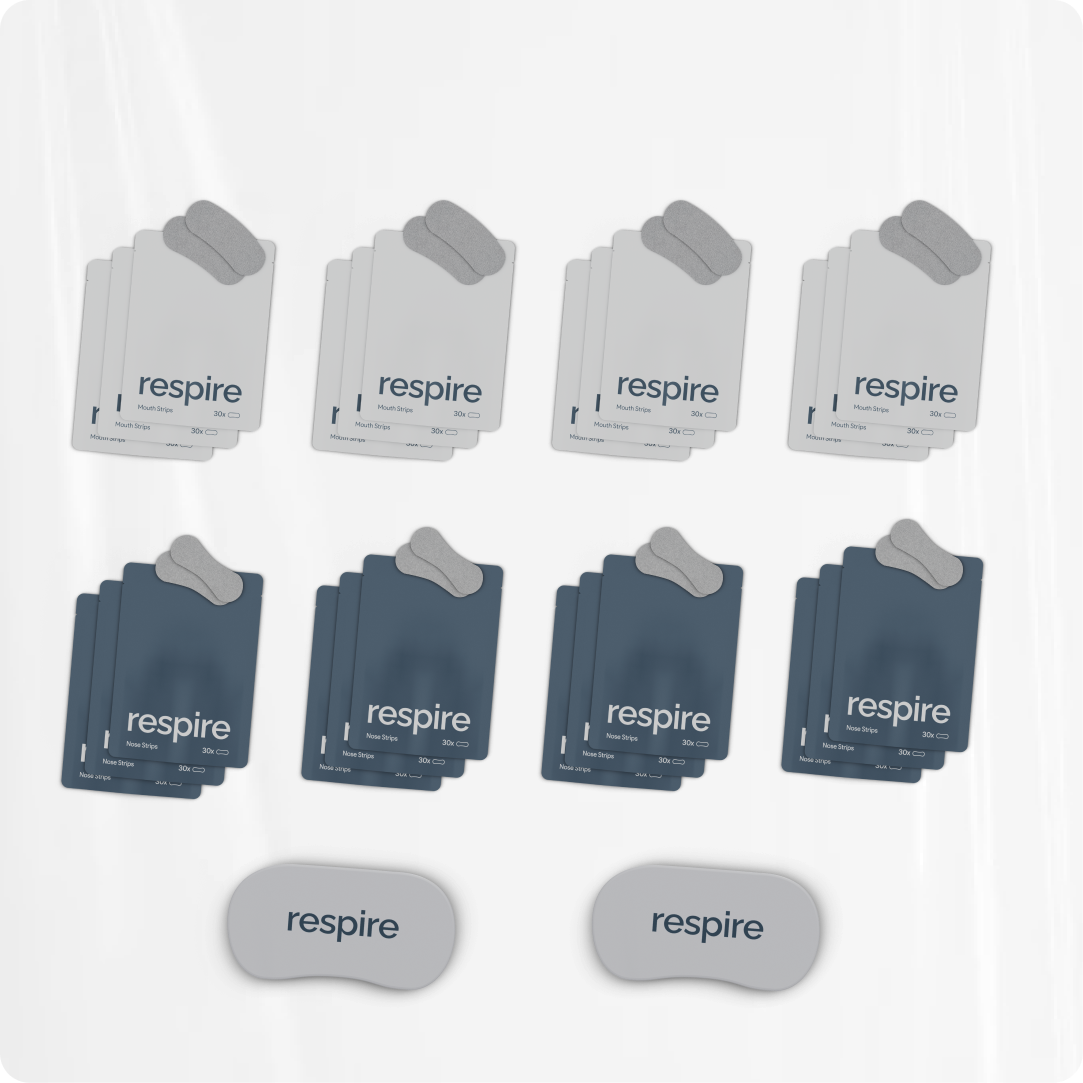 Get a 3 month supply of Respire Sleep Strips + Nose Strips + 2 x reusable containers for 30% OFF! The perfect supply to form your nose breathing habit.